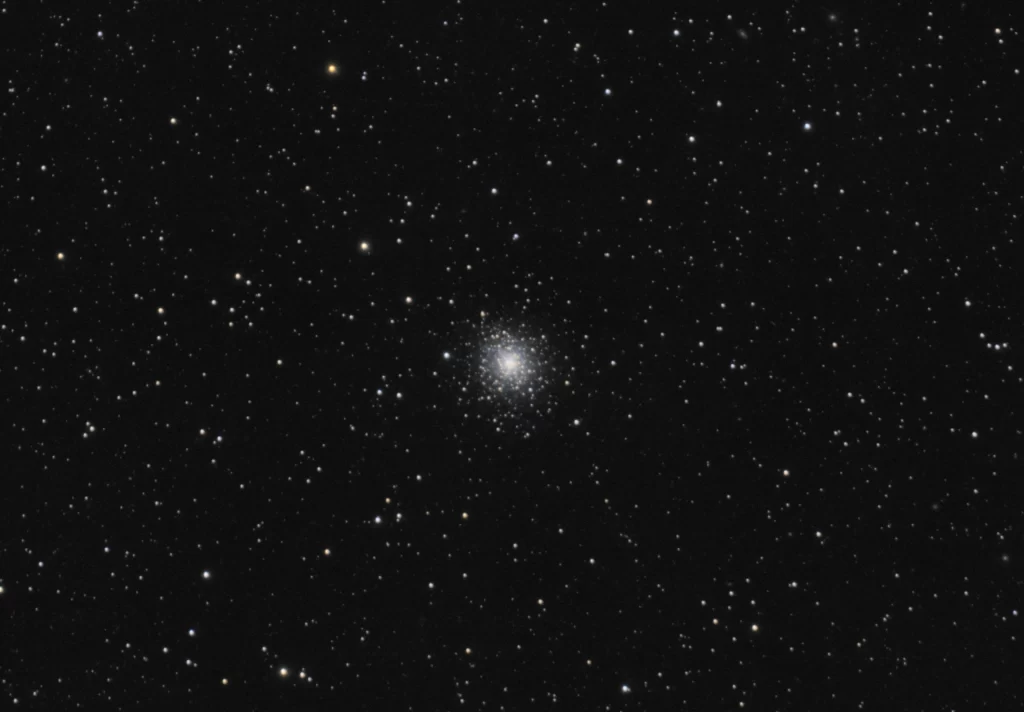 A brief window opened one night recently, and I got an image of Messier 92, a globular cluster in the Hercules constellation. Although not as large and bright as Messier 13, which is near to it in the sky, it is still very pretty.