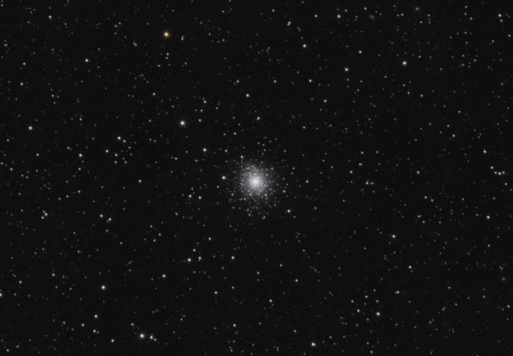 The focus for this image was a bit soft, so I want to reshoot the cluster at a later date. There are several faint galaxies in the area, too. More exposures will help bring them out in the final image.