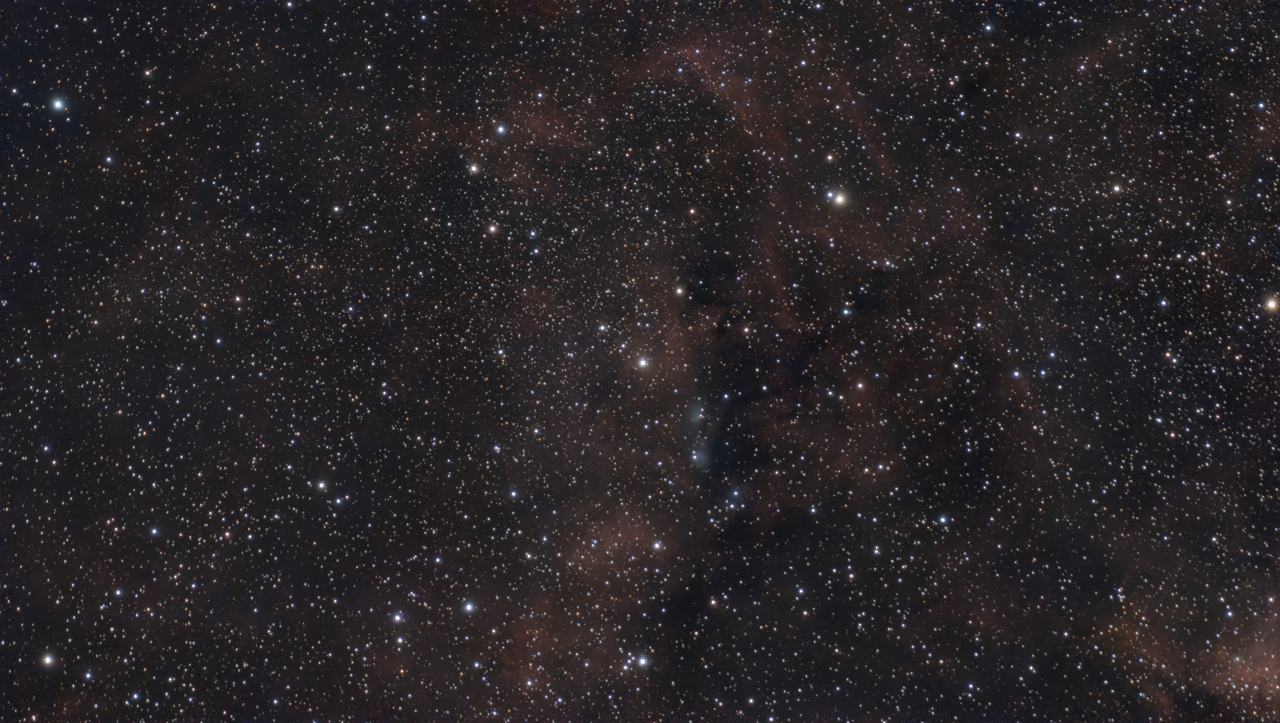 The bluish nebula near the center of this image is NGC 6914, a reflection nebula approximately 6,000 light years away in the Cygnus constellation. The blue color comes from star light reflecting off clouds of interstellar dust. The surrounding red light is from clouds of ionized hydrogen gas.
