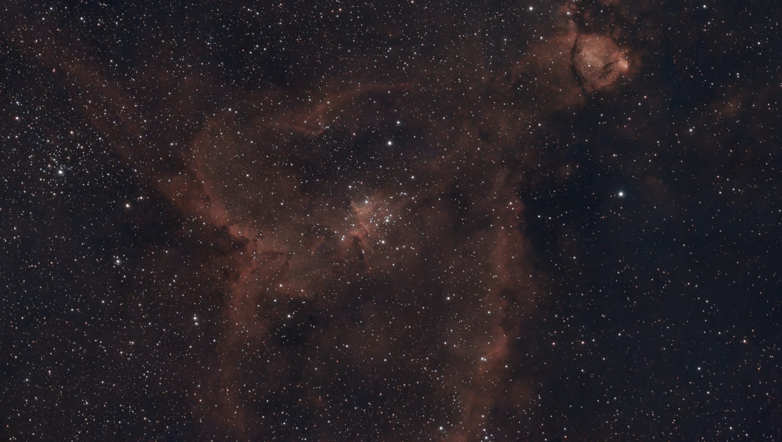 I purposely showed the Soul Nebula slightly off-center to give a sense of how close it is to the Heart Nebula, the outer edge of which is faintly visible in the upper-right corner of the image. Maybe next year I will do a mosaic of the entire region that will properly show both nebulae side-by-side.
