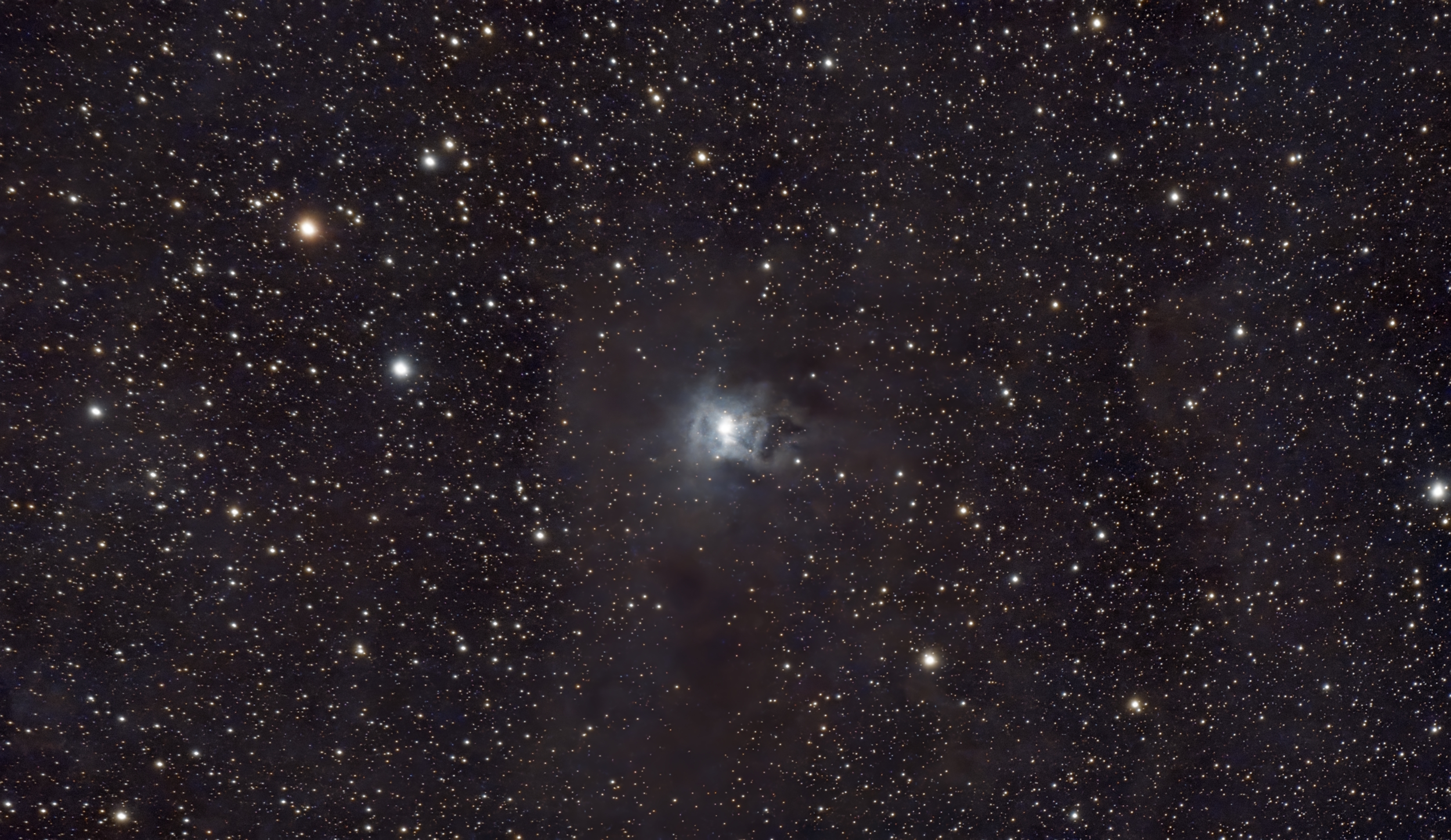I’ve been wanting to image this one for a long time. The Iris Nebula is in the constellation Cepheus and is a reflection nebula that is illuminated by a bright, central star. Clouds of dark, light-obscuring dust create “voids” in the surrounding starfield.