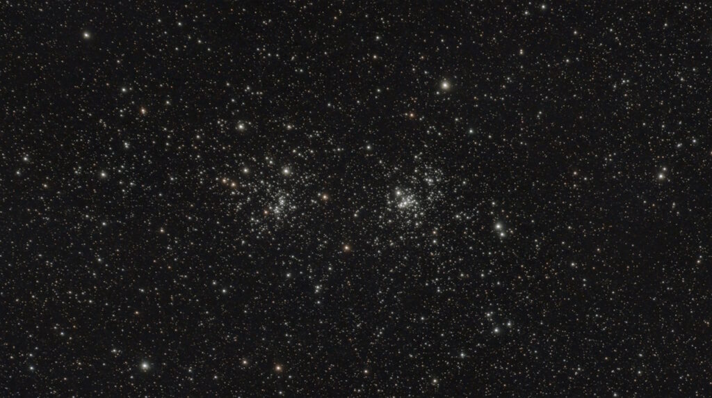 There are several “double clusters” in the sky, but this pair in the constellation Perseus is THE double cluster. Collectively referred to as Caldwell 14, the cluster on the left is cataloged as NGC 884 and the one on the right is NGC 886.